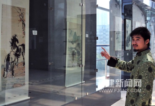 12月2日,當地民眾及藝術家正在福建大劇院欣賞兩岸書畫名家大作。當日,由福建省文化廳主辦,臺北福建省同鄉會、臺北八閩書畫協會、臺中中國書協研究發展協會等共同舉辦的第四屆福建藝術節海峽兩岸書畫名家作品展在福州展出。旨在拓展兩岸書畫藝術內涵、進一步加強閩臺藝術交流與合作。(張麗君 攝)