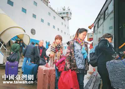 2018年春節前夕,由于臺當局限縮兩岸飛機航班,眾多臺胞難以趕回臺灣過年。為解臺胞之急,“中遠之星”加開航班,保障臺胞順利返鄉。圖為臺胞在浙江大麥嶼口岸準備登船返臺。(圖片來源:浙江省臺辦)