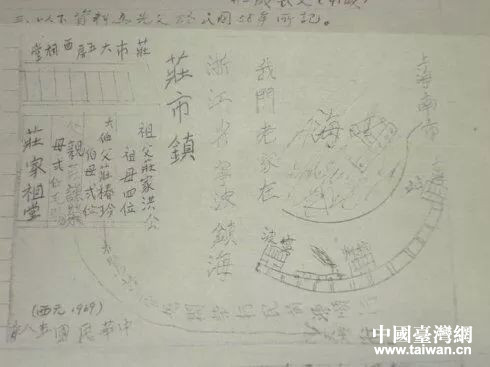 莊初文爺爺莊源水畫的家鄉地圖。(圖片來源:浙江省臺辦)