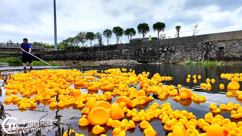 活動結束后剩余小黃鴨被全部打撈起。(中國臺灣網發)