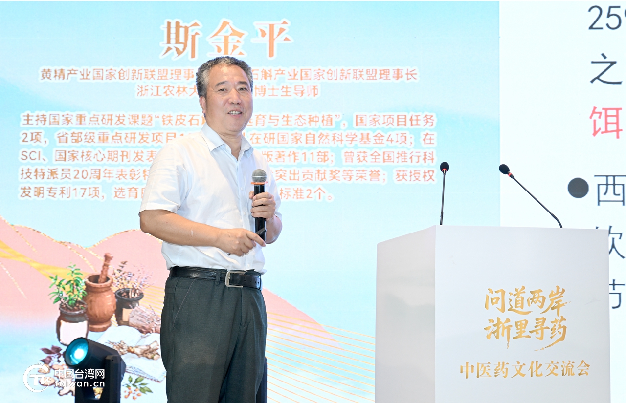 黃精產業國家創新聯盟理事長,鐵皮石斛產業國家創新聯盟理事長,浙江農林大學教授、博士生導師斯金平交流發言。(中國臺灣網發)