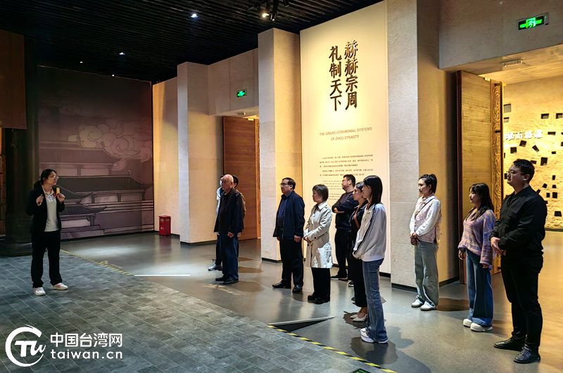 與會代表在陜西省對臺交流基地——梁帶村芮國遺址博物館參觀。(中國臺灣網發)