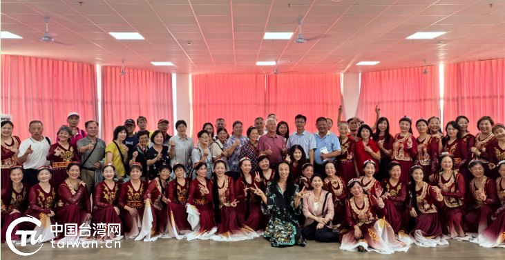 兩岸老人共跳新疆舞后合影。(中國臺灣網發)