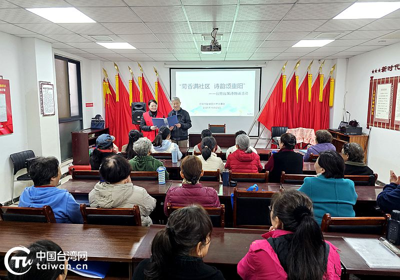 活動現場,來自社區的文藝骨干、老年大學學員以及臺胞臺屬代表輪番登場,傾情演繹!毒旁戮湃諔浬綎|兄弟》中“獨在異鄉為異客,每逢佳節倍思親”的共情詩句,《采桑子·重陽》里“戰地黃花分外香”的豪邁意境,在雙方飽含深情的誦讀中被生動詮釋!吨仃柺銘选贰毒蠢细琛贰多l愁》等一首首膾炙人口的經典詩詞和現代篇章,也在大家聲情并茂的演繹下,或激昂澎湃,或深沉婉轉,充分展現了中華詩詞的永恒魅力,更表達了對老人的深深祝福、對家鄉的深切思念以及對美好生活的熱愛與向往。特別是幾位臺胞臺屬的朗誦,情深意切,引起了在場觀眾的強烈共鳴,現場不時爆發出陣陣熱烈的掌聲。誦讀間隙,臺胞臺屬與轄區居民還圍繞詩詞背后的節日習俗展開交流,雙方你一言我一語,在文化交流中加深了對彼此生活的了解,也讓“兩岸同根、文化同源”的認知更加深刻。
