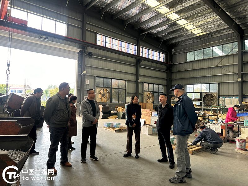 臺胞萬承遠先生一行在鎮屬企業朗安金屬參訪。(中國臺灣網發)