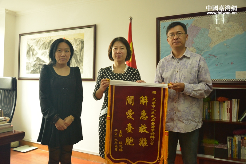 中國臺灣網9月26日訊 日前,臺商張先生夫婦給大連市臺辦送來“解急救難 關愛臺胞”的錦旗,對市臺辦幫助女兒從臺灣重返大連就讀一事表達感激之情。