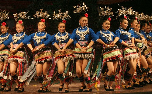 11月6日,多彩貴州農民藝術團的演員在蘇州市金閶區文化館表演民族歌舞。新華社發(戚振林 攝)
