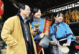 臺灣游客在安順天龍屯堡品嘗大碗茶。