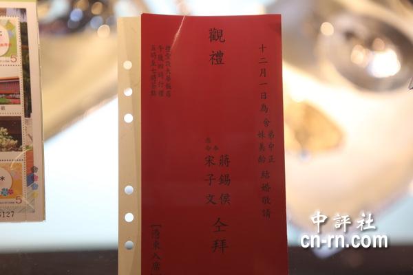 蔣中正夫婦結婚喜貼。(中評社劉冠廷攝)
