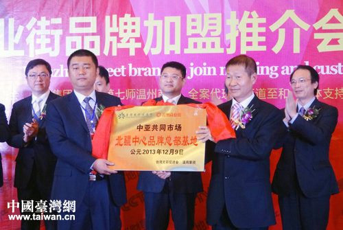 臺灣光彩促進會臺商連鎖委員會向北疆品牌基地授牌。(中國臺灣網 發)