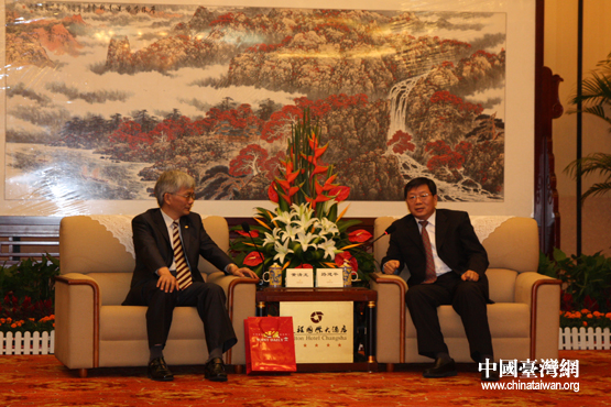 中共湖南省委常委、省委宣傳部部長路建平會見兩岸記者(右一)(中國臺灣網 陳寧 攝)