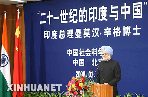 1月15日上午,印度總理辛格在北京中國社科院小禮堂發表題為《21世紀的印度與中國》的演講。新華社記者 李濤 攝
