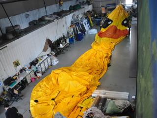 張壯謀指出,為了對抗新屋沿海強風,在桃園展出的小黃鴨,必須要更強化縫紉工法及內部加強條固定,才能呈現國際級穩固鴨體。(中國臺灣網 高旭)