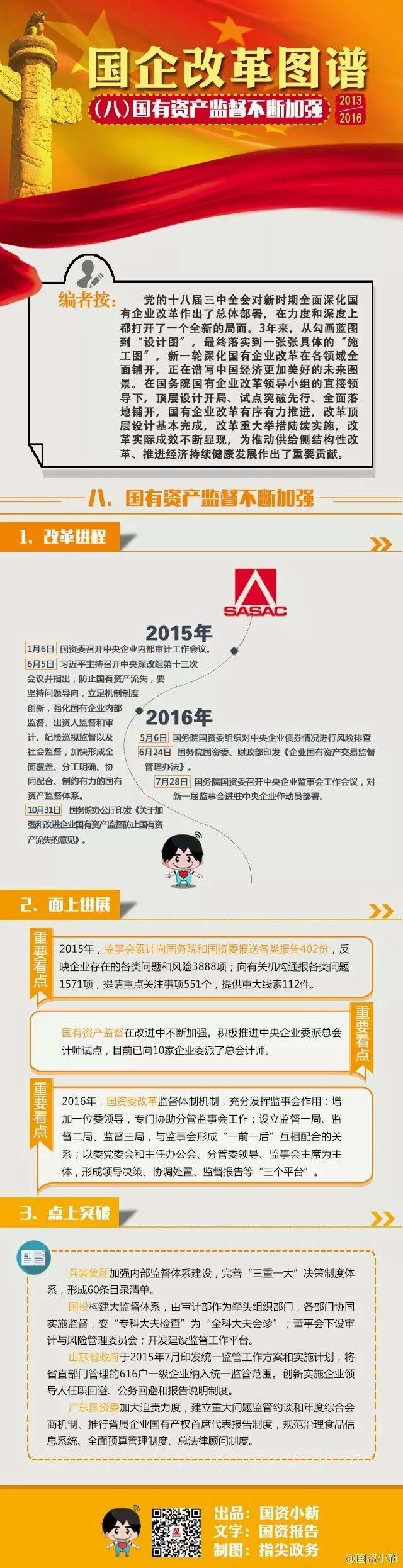 小新梳理素材、整合資料,聯合《國資報告》、指尖政務,為大家重磅推出“2013—2016國企改革圖譜”!每天一圖,讓你一圖看懂國企改革。今天,咱們來看國企改革圖譜之八:國有資產監督不斷加強——
