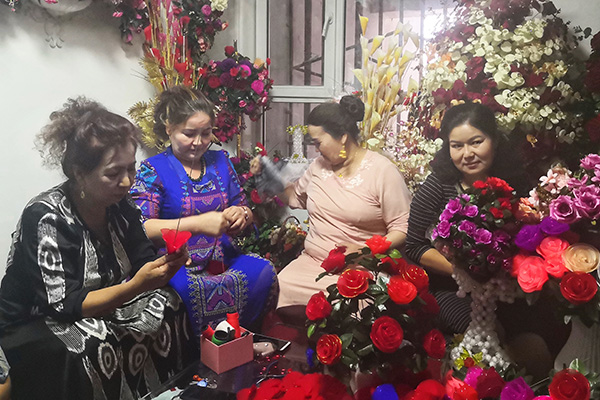 阿依吐拉一聽當即答應下來,不僅義務培訓,還陸續提供了1萬多元的絹花制作材料。今年2月才成立的絹花培訓室,現在已有30多位婦女學生在這里學習,并制作了100余件絹花作品,銷售額達2萬元。除了現場教學,阿依吐拉的微信里還有80余名各地的學生,通過微信學習絹花制作。