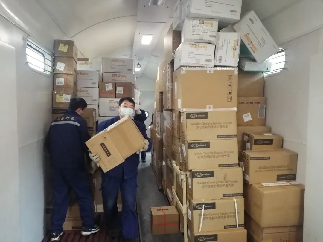 2月24日晚23時25分,由北京西開往昆明方向的Z161次列車?课洳1站臺,卸下了497箱、近8噸用于滿足武漢火神山醫院、雷神山醫院、中國人民解放軍中部戰區總醫院和湖北省婦幼保健院(光谷院區)、武漢市泰康同濟醫院需要的防控物資。