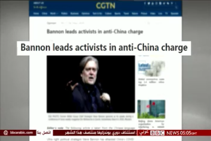 英國廣播公司阿語新聞頻道(BBC Arabic)5月4日轉發《新聞聯播》中關于《口出狂言的反華急先鋒班農唯恐天下不亂》的口播畫面,并引用銳評英文版報道稱:“中國中央電視臺播發評論指出,美國面臨的最大危險不是新冠病毒,而是特朗普政府內部的極右民粹分子;他們的‘甩鍋’行為是將美國應對疫情不力的責任轉嫁給中國;其所謂的‘追責索賠’毫無依據,目的是逃避自身的責任!