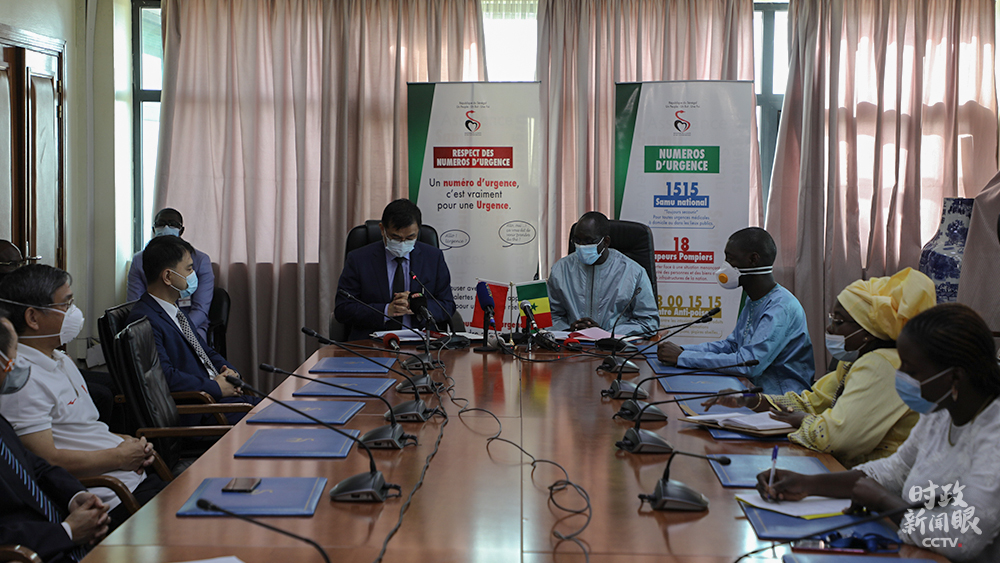 △4月22日,塞內加爾舉行中國援塞抗擊新冠肺炎疫情物資交接儀式。這批抗疫物資分別由中國政府、兩家在塞中資企業捐贈。(總臺央視記者韓蓄提供)