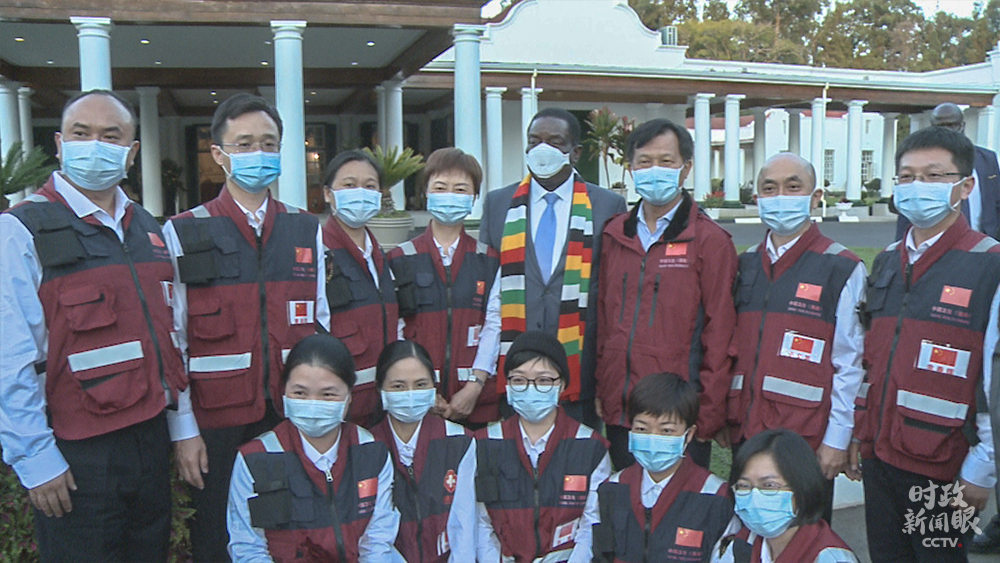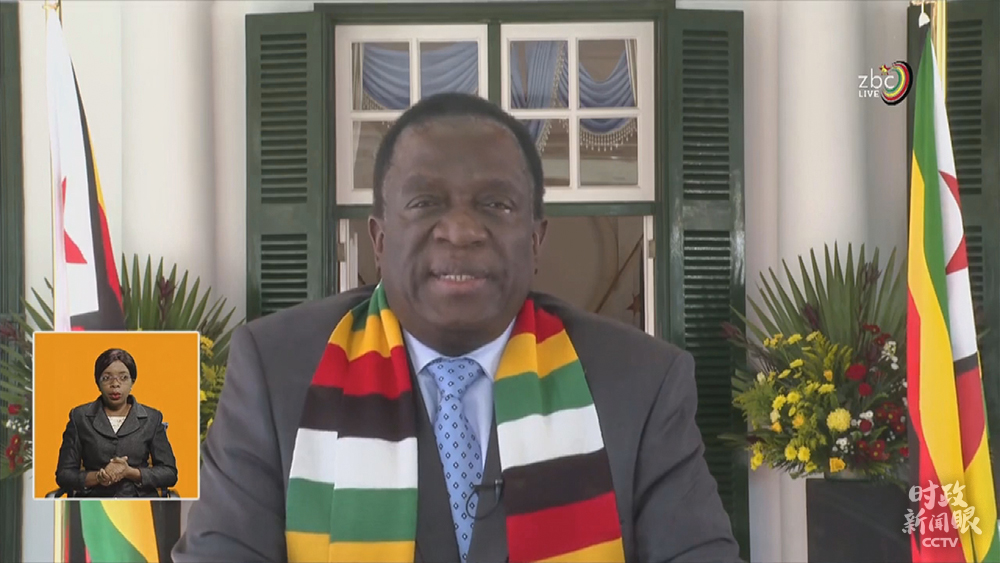 △5月12日,津巴布韋總統姆南加古瓦在總統府接見中國抗疫醫療專家組,并在國家電視臺發表講話時,再次感謝中國幫助津巴布韋抗擊新冠肺炎疫情。(總臺央視記者馬培敏提供)