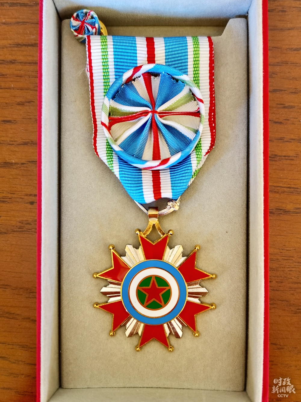 △5月10日,吉布提共和國總理卡米勒向中國赴吉布提抗疫醫療專家組授勛。曾勇組長被授予“軍官級獨立日勛章”。(總臺央視記者馬培敏提供)