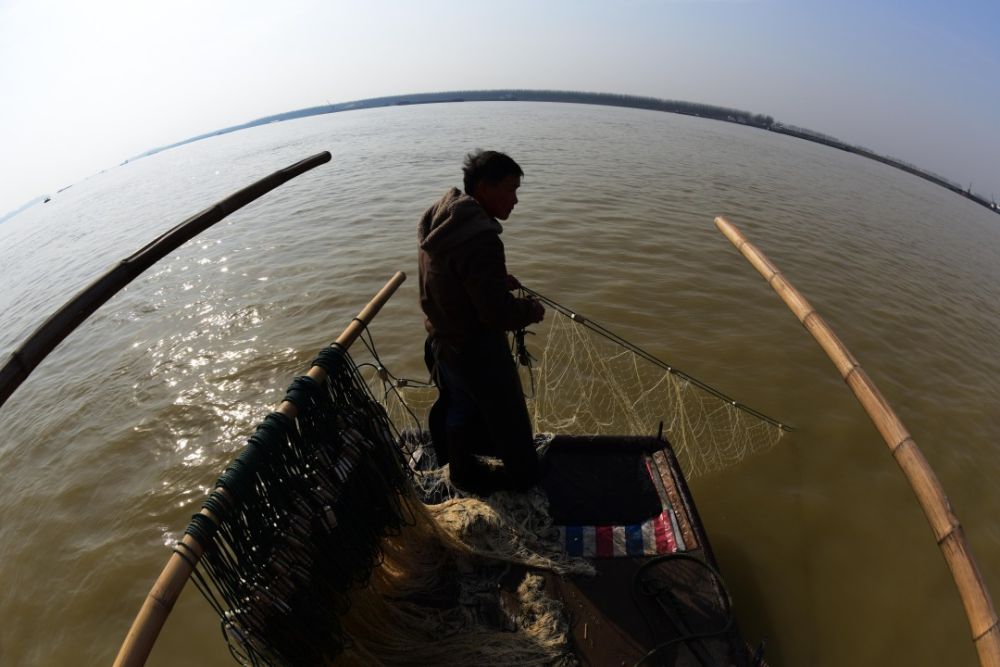 2016年長江禁漁期提前于3月1日開始,持續4個月時間。漁民們抓緊年后短短的捕撈期開工作業,盡管每日出船勞作10多個小時,但難有收獲,經常是空網上岸。(2016年2月18日,新華社記者 程敏 攝)