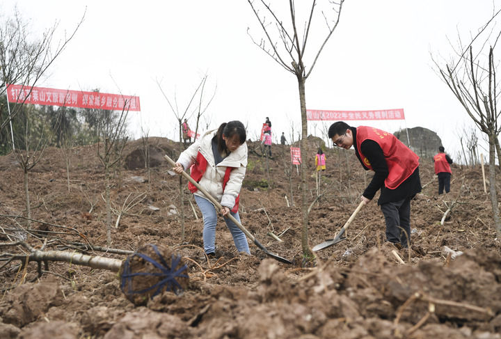3月1日,在重慶市璧山區,參加義務植樹活動的志愿者在植樹。新華社記者 王全超 攝