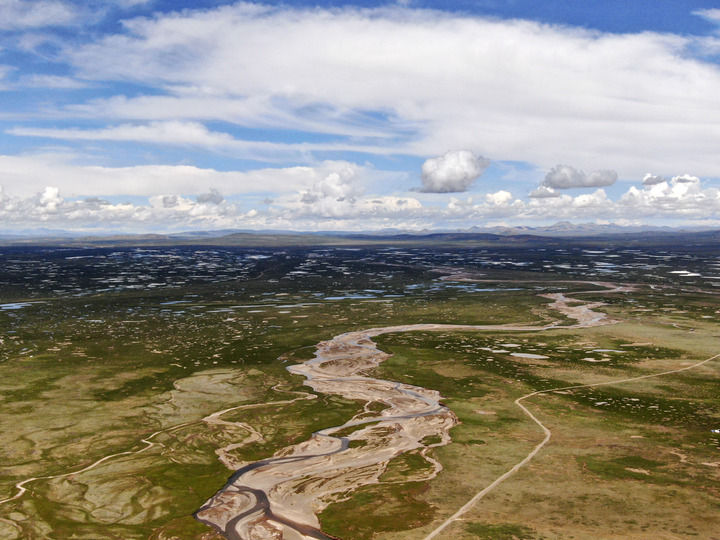 這是2021年7月23日拍攝的長江南源當曲(無人機照片)。新華社記者 張龍 攝
