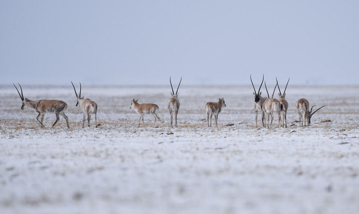 2021年4月20日,藏羚羊在三江源可可西里地區活動。新華社記者 吳剛 攝