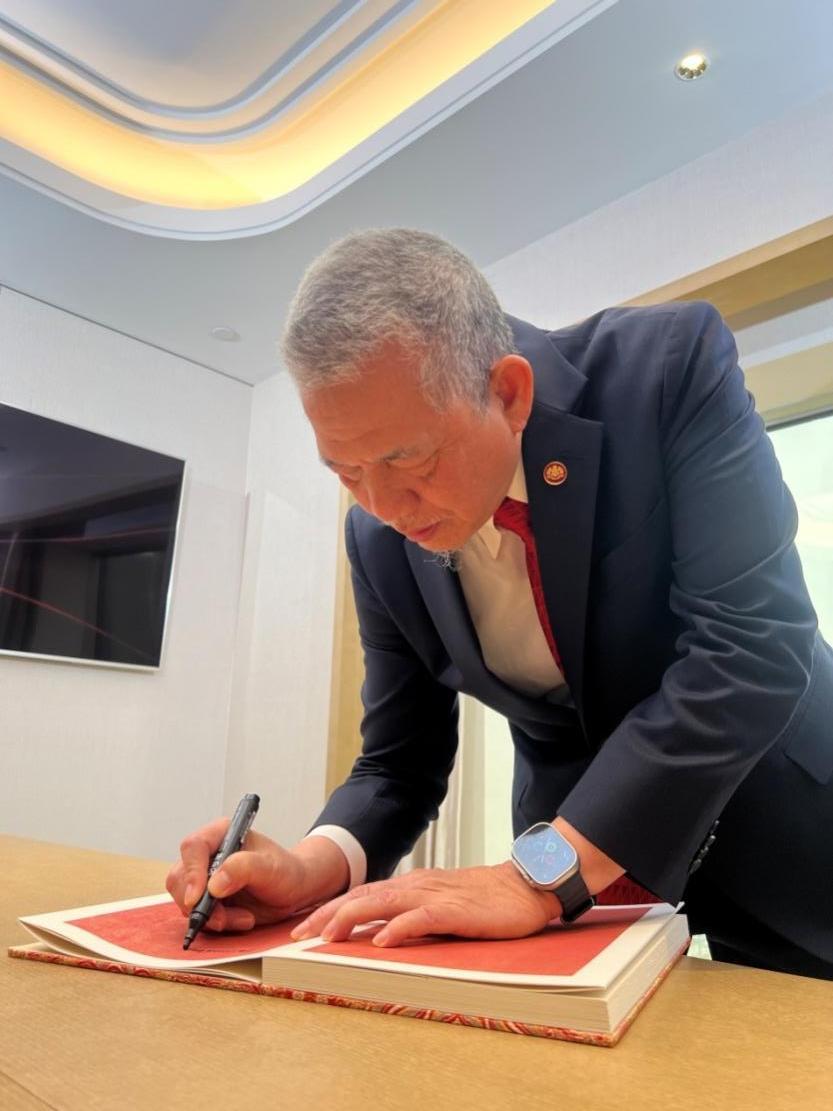 采訪結束后,法迪拉為總臺題詞:“感謝中國中央廣播電視總臺為促進馬中兩國交流發揮的橋梁作用,期待總臺繼續推動雙方在各領域的友好合作!