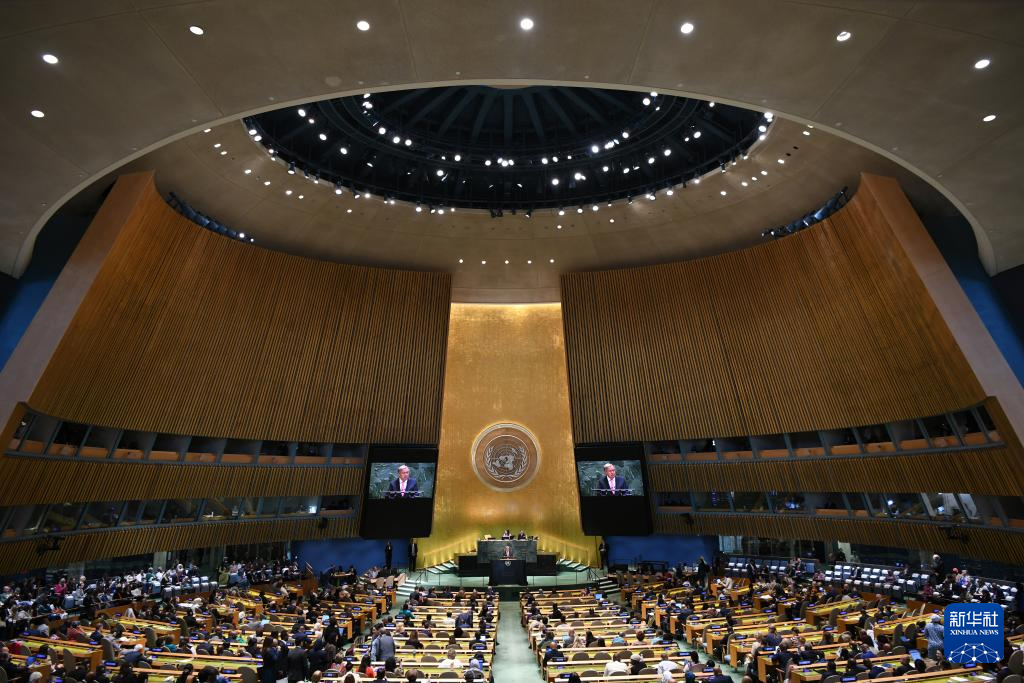 這是2025年9月22日在位于紐約的聯合國總部拍攝的聯合國大會紀念北京世婦會30周年高級別會議現場。新華社記者 李睿 攝
