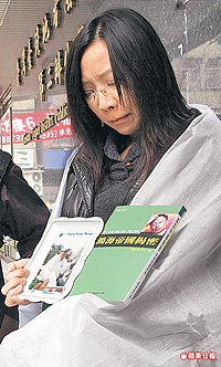 《壹周刊》前記者臧家宜(圖)因恐嚇臺灣首富郭臺銘遭判刑,她昨披麻帶孝到臺北地檢署要求入監但被勸回。來源:臺灣《蘋果日報》
