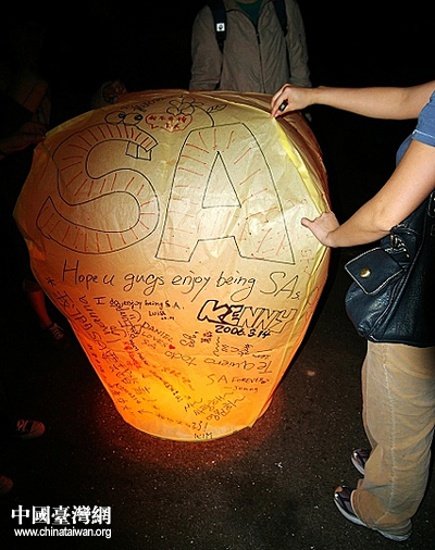 來臺讀書的各地大學生,也經常DIY天燈,這是一項體驗臺灣傳統民俗文化的重要活動。