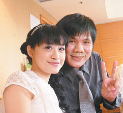 臺灣從事廣告設計的cosplay迷馬家儀(左)、林芳妤,以硬紙板制造日本動漫《機動戰士》人物,作為結婚禮服。圖片來自臺灣媒體