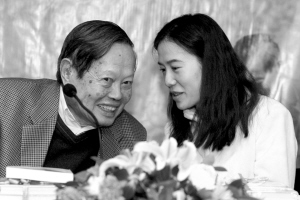 翁帆為楊振寧重復讀者、媒體的問題。本報記者 蒲東峰 攝