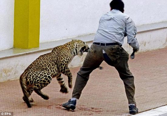 2016年2月8日報道,印度班加羅爾,一頭野生豹子突然奔入學校傷人,共有6人受不同程度傷害。其中一名動物學家遭到突然攻擊,該男子拿起望遠鏡搏斗這一瞬間被拍攝下來。