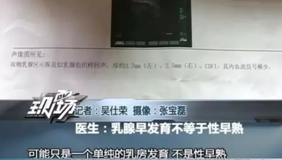 廣東電視臺公共頻道《DV現場》8月15日報道:今日接到韶關湞江區犁市鎮的街坊李女士爆料,說她三個多月大的女寶寶,胸部摸上去有硬塊,去醫院照b超,還被告知乳腺有早發育的跡象。三個月大就出現性早熟嗎?究竟是什么問題造成呢?