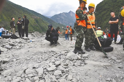 面對親人的遇難和失聯,作為阿壩縣特警一大隊的一名救援特警,高猛選擇了強忍悲痛,忙碌在救災一線。從24日下午抵達現場后,他一直堅守在救援崗位上!氨U暇仍褪菍τH人最好的祈禱!彼f。