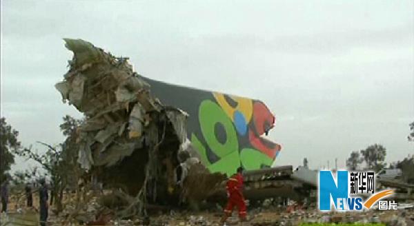 這張利比亞國家電視臺5月12日的電視照片顯示,利比亞非洲航空公司的一架客運班機墜毀在黎波里機場附近。 利比亞非洲航空公司12日說,當天早晨6時左右,8U771航班班機由南非約翰內斯堡飛抵的黎波里,在試圖降落的過程中突然墜毀。據報道機上有93名乘客和11名機組人員。新華社/法新