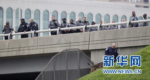 10多名警察排成一隊,對南側草坪展開搜索。弗吉尼亞警方暫時關閉附近一段高速公路,以配合調查。