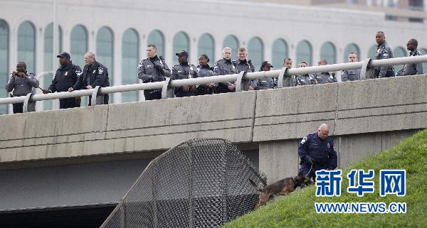 10月19日,調查人員在美國華盛頓五角大樓附近搜尋證物。美國國防部所在地五角大樓當天早晨遭到槍擊,子彈擊中大樓窗戶,但沒有造成人員傷亡。 新華社/美聯