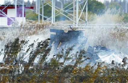 在一個沒有鐵絲網,可以直接進入蘆葦叢的馬路邊,不時有人停車駐足觀看。由于蘆葦叢比較茂盛,記者爬上路邊一棵樹,才看到飛機殘骸,一些地方被燒得漆黑。下午2時記者再去查看時,警察仍在現場值守,而飛機部分大件殘骸上已被一層帆布覆蓋。