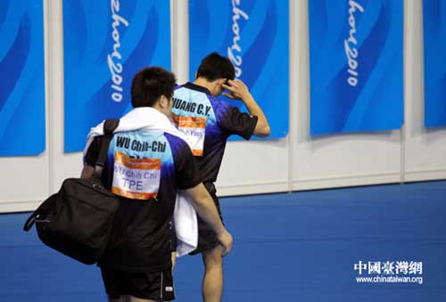 中國臺灣網11月18日廣州消息 18日11點30分,廣州亞運會乒乓球比賽男雙1/8決賽正式開打,中華臺北隊名將莊智淵和吳志祺搭檔,不敵越南的段建國與丁廣靈組合,以1比3輸掉比賽,無緣8強。