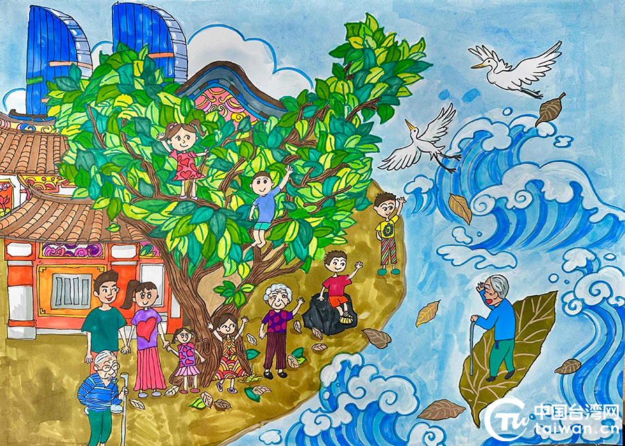 《海峽兩岸的生命樹》--福建廈門8歲小朋友朱柏伊的作品。(中國臺灣網發)