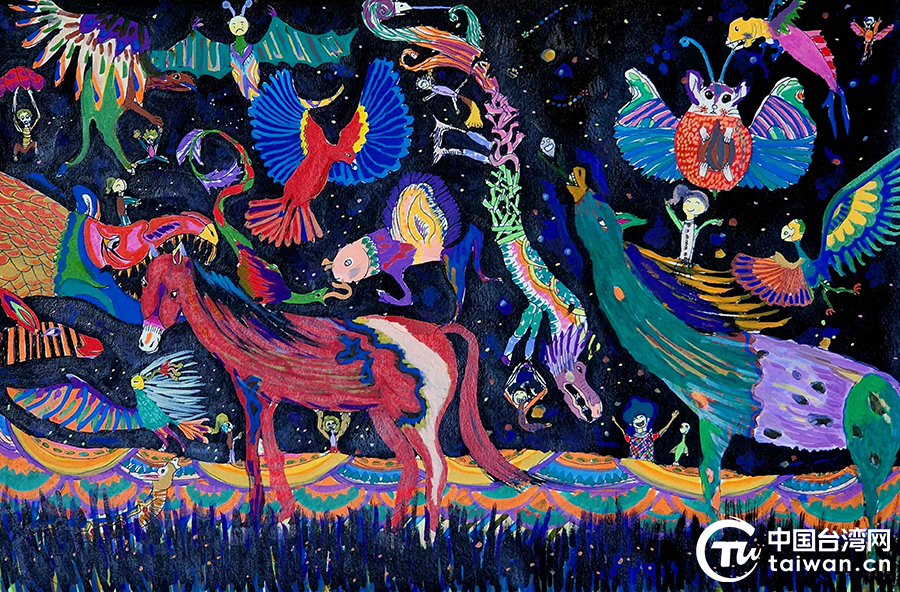 《夜空中的神秘派對》--北京8歲小朋友楊迄的作品。(中國臺灣網發)