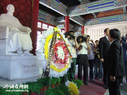 中國臺灣網5月17日北京消息 由臺灣知名人士辜儼倬云率領的中華婦聯總會參訪團一行今天上午來到北京香山碧云寺,謁祭孫中山紀念堂及孫中山先生衣冠冢。