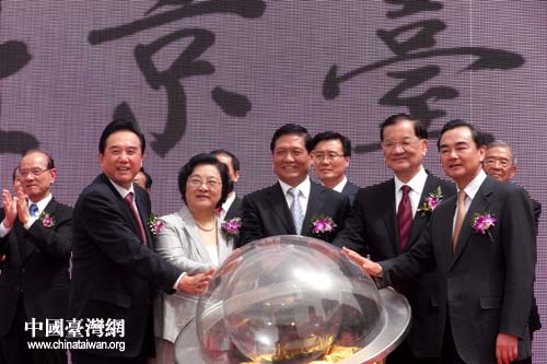5月7日,北京首條臺灣文化主題商業街——北京臺灣街正式開街。中國國民黨榮譽主席連戰,中共中央政治局委員、中共北京市委書記劉淇,全國政協副主席、臺盟中央主席林文漪,中共中央臺辦、國務院臺辦主任王毅,海協會會長陳云林等為臺灣街開街。(中國臺灣網 蕪同 攝)