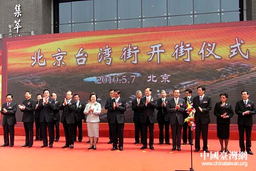 5月7日,北京首條臺灣文化主題商業街——北京臺灣街正式開街。中國國民黨榮譽主席連戰,中共中央政治局委員、中共北京市委書記劉淇,全國政協副主席、臺盟中央主席林文漪,中共中央臺辦、國務院臺辦主任王毅,海協會會長陳云林等為臺灣街開街。(中國臺灣網 董潔 攝)