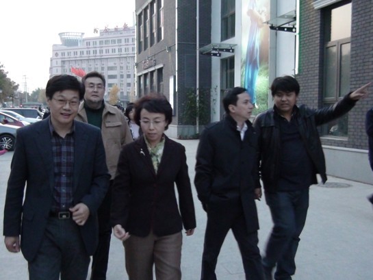 北京國新商業投資發展有限公司總經理田小彥和副總經理尹曉東進行全程陪同,兩位公司高層領導正在和來到的相關市委領導進行交談與講解。
