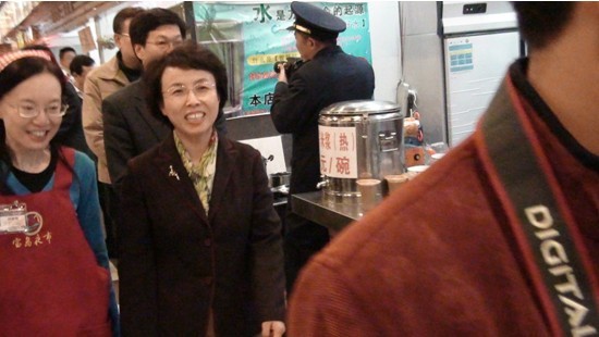 北京市副市長陳紅來到了寶島夜市美食街,觀看了小吃工作人員的現場制作沒事過程,非常的開心。