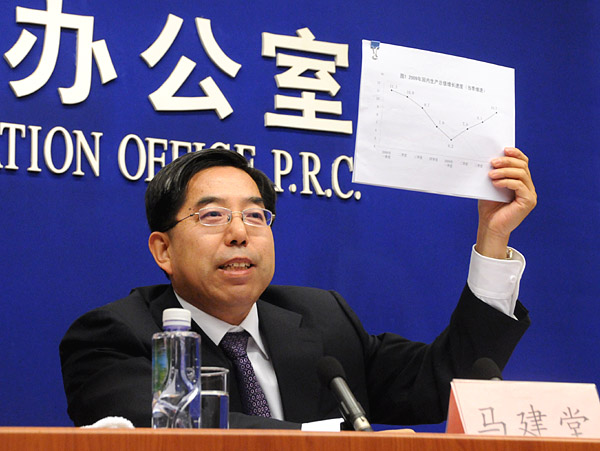 國家統計局局長馬建堂在國務院新聞辦公室舉行的新聞發布會上說,面對百年不遇的國際金融危機的嚴重沖擊和極其復雜的國內外形勢,中共中央、國務院審時度勢,科學決策,帶領全國人民萬眾一心,共克時艱,堅持實行積極的財政政策和適度寬松的貨幣政策,全面實施并不斷完善應對國際金融危機的一攬子計劃,較快扭轉了經濟增速明顯下滑的局面,實現了國民經濟總體回升向好。
